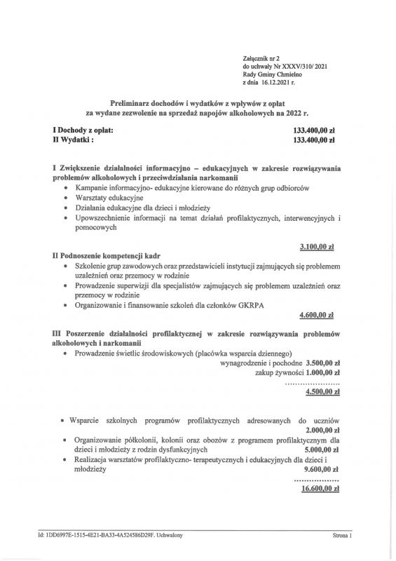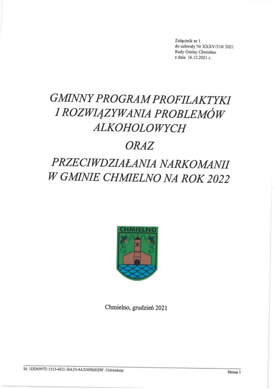 Uchwała nr XXXV/311/2021 Rady Gminy Chmielno