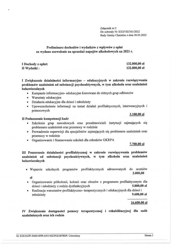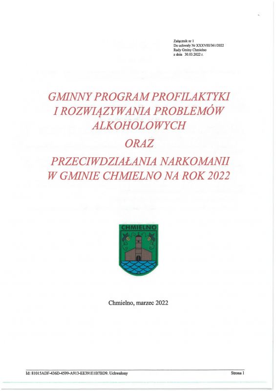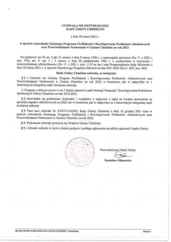 Uchwała nr XXXVIII/361/2022 Rady Gminy Chmielno