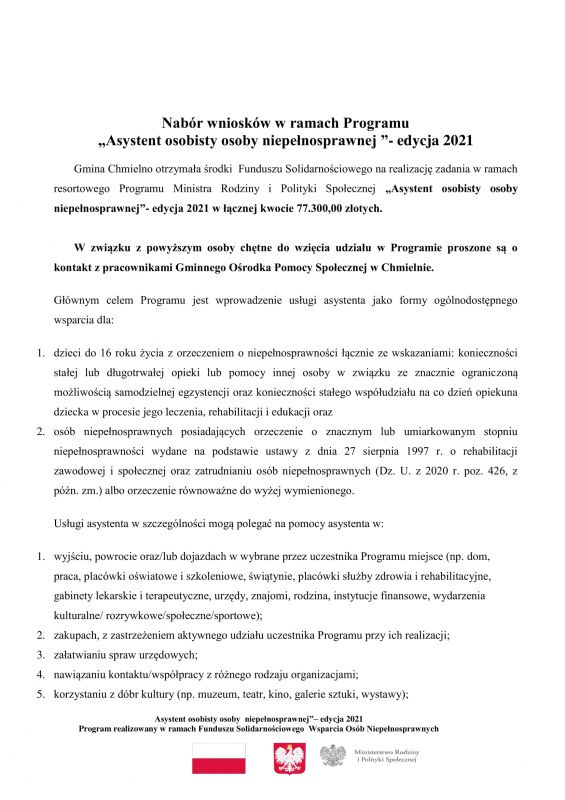 Program “Asystent Osobisty Osoby Niepełnosprawnej”- edycja 2021