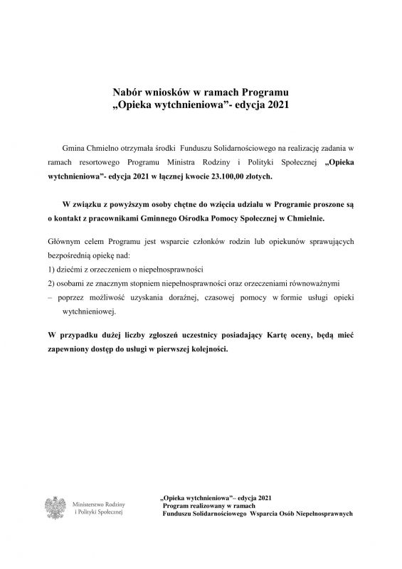 Program “Opieka wytchnieniowa” – edycja 2021