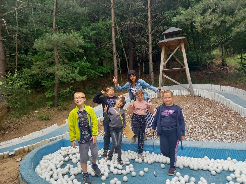 Czwartego dnia zajęć profilaktycznych dzieci odwiedziły Mini Golf w Zgorzałem. Skorzystaliśmy z atrakcji min. gry w golfa, mini zoo, placu zabaw, a po wycieczce znaleźliśmy jeszcze trochę czasu na grę w piłkę na świeżym powietrzu.